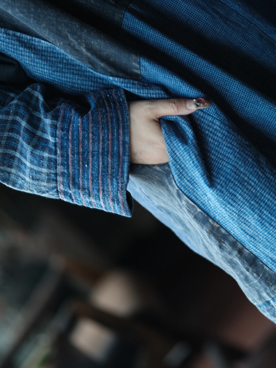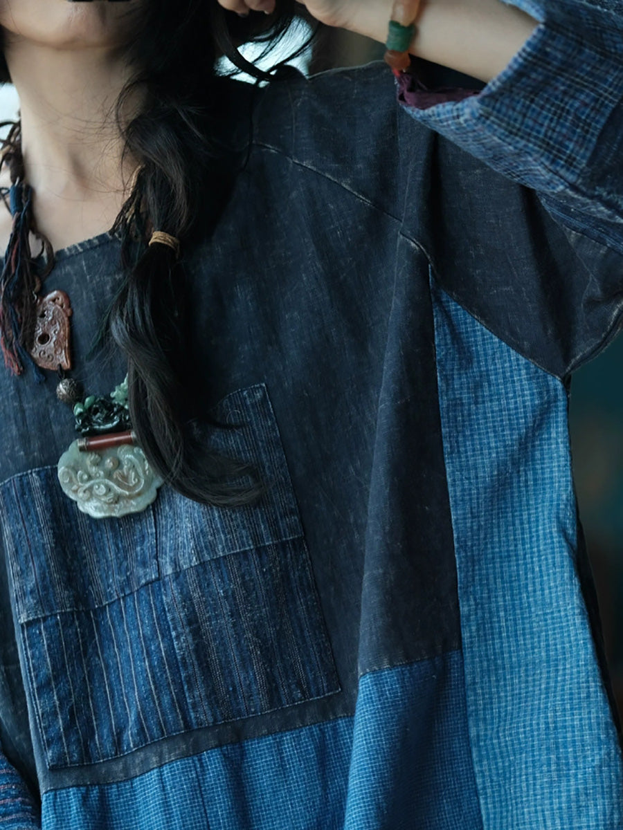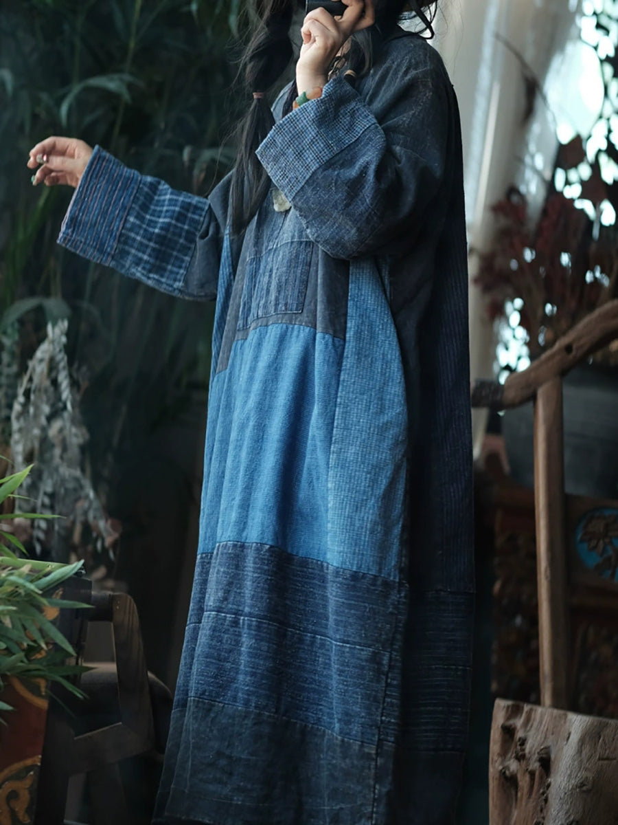 Women's Autumn Retro Patchwork Cotton O-neck Dress